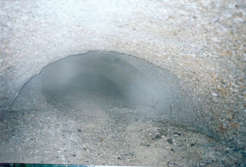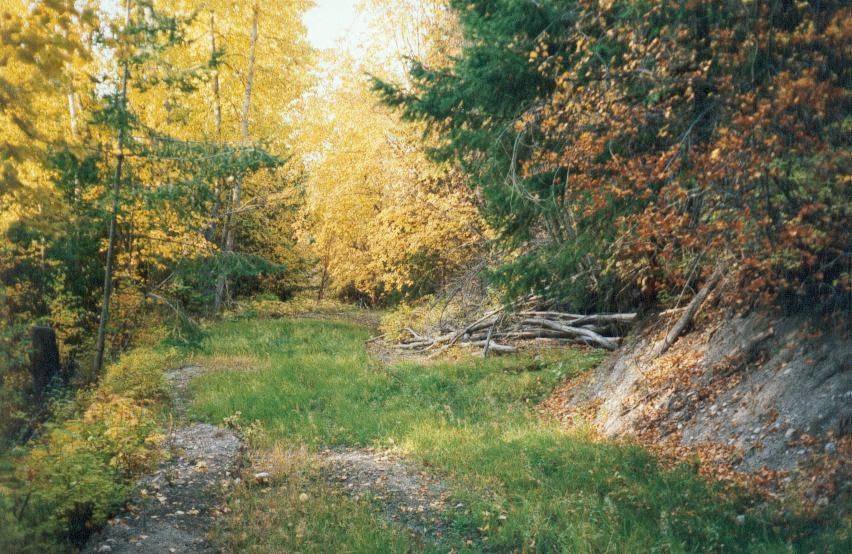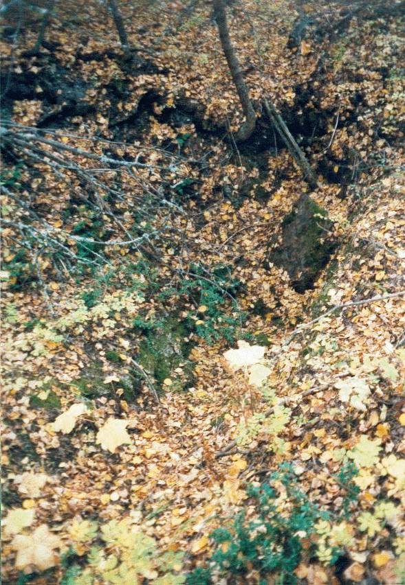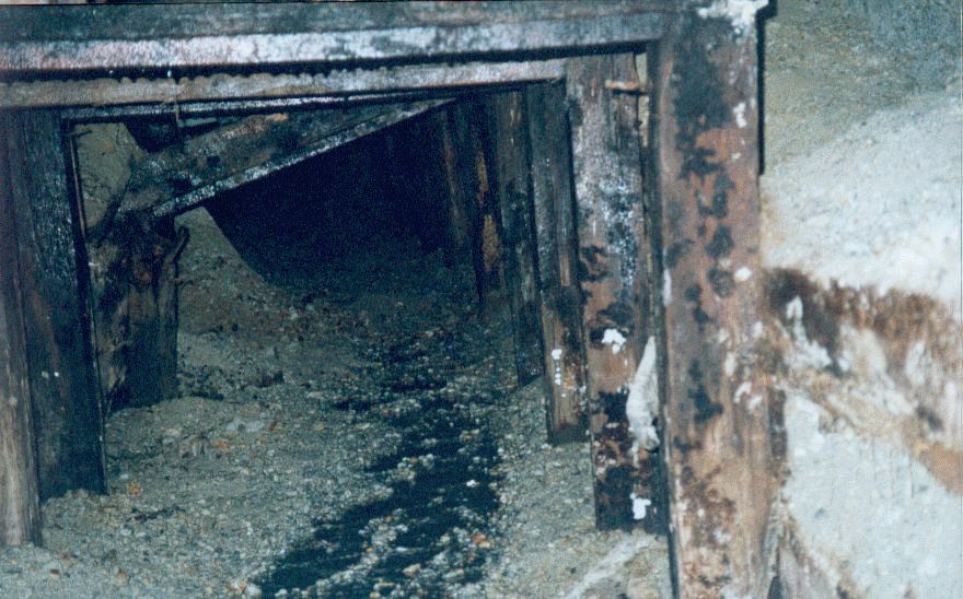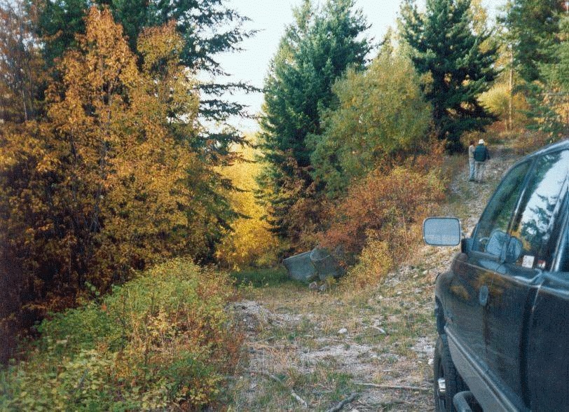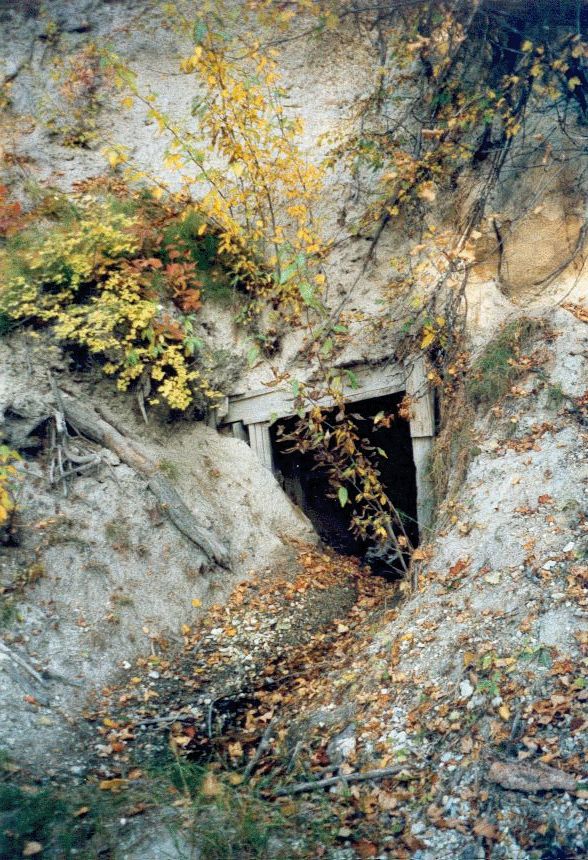 Looking north, bottom road with shafts into bank. Top road, RJ and Garth at the entrance to Fife Sommerville's 350' tunnel: