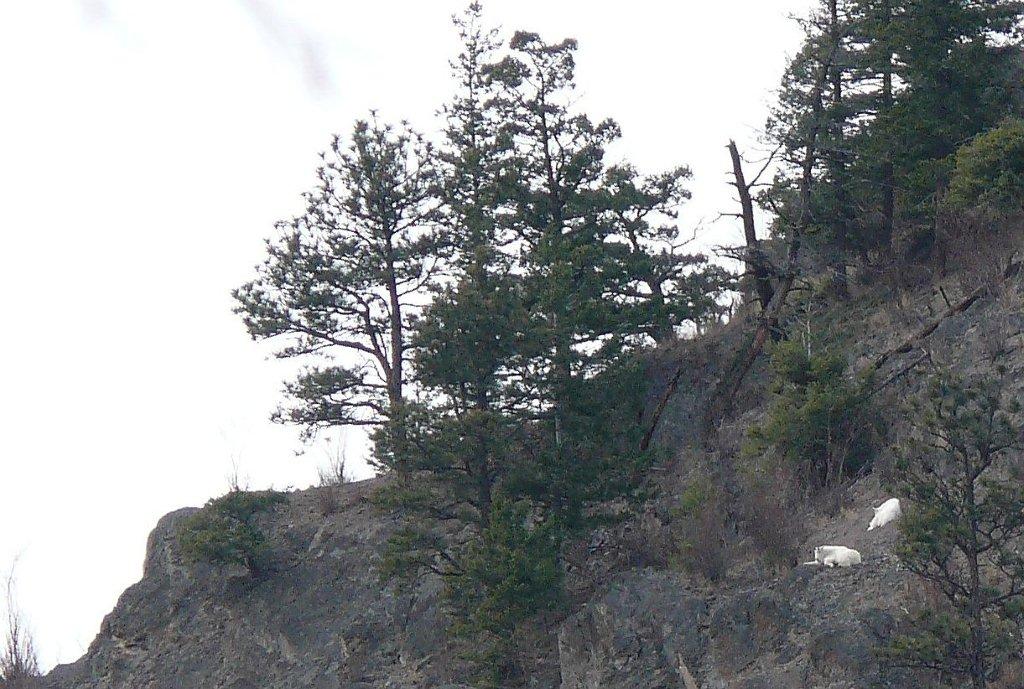 Here are Mountain Goats on Mount Drought right beside Goat's peak. They probably are afraid to cross the underpass to Goat's Peak. Real Mountain Goats appearing on Goat's peak in the 1900's may have given the mountain its name. Picture by Lars Karstad, March 26, 2012: