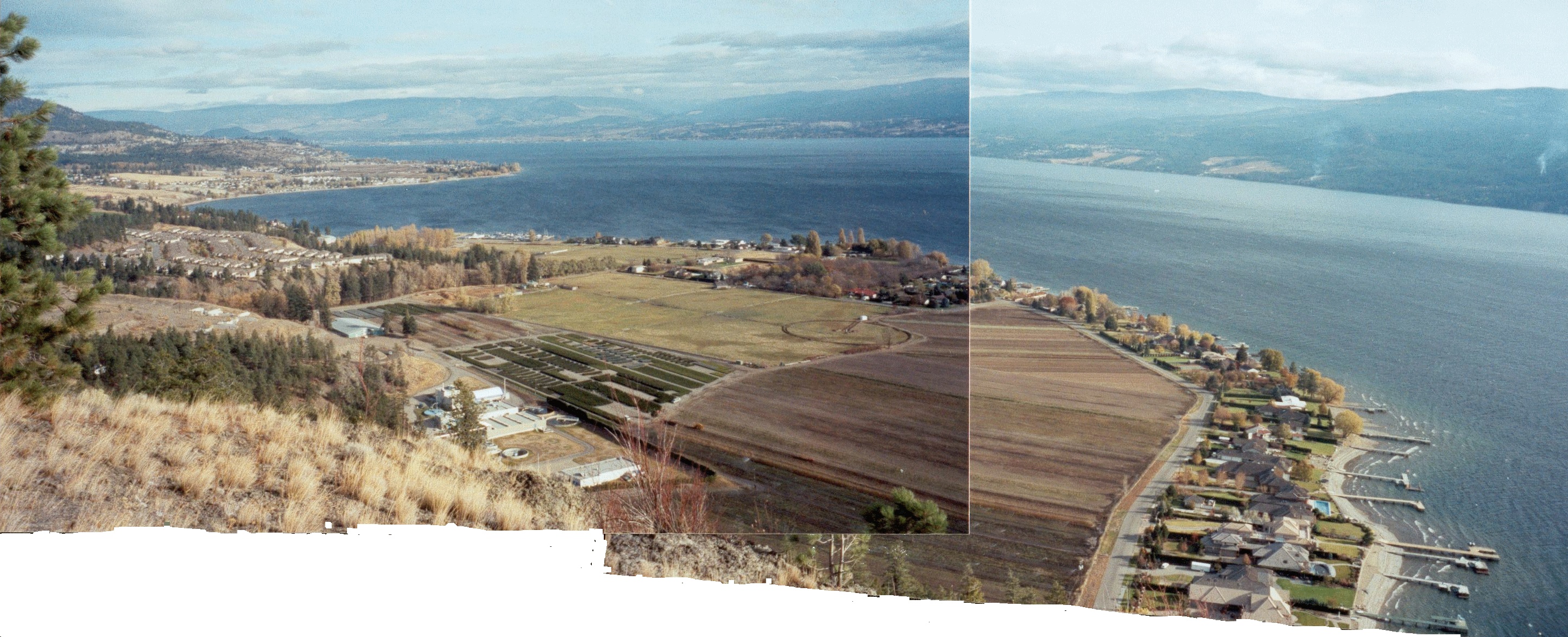 Powers Flat from Goat's Peak 2003.Then and now, 1977 and 2002, mosaic of Boucherie and Gellatly